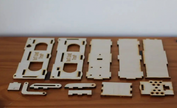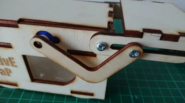 我用激光切割機製作了木製版的捕鼠器。我試圖設計最佳的盒子。在這裏您可以看到外殼是如何組裝在一起的。對於(yu) 窗戶,我使用了 CD 盒的亞(ya) 克力部分。