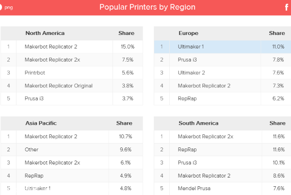 總部位於(yu) 荷蘭(lan) 的分布式3D打印網絡3D Hubs 近日發布了2014年8月份的全球3D打印趨勢報告。該報告主要通過對3D Hubs平台上發生的3D打印服務交易以及在平台上注冊(ce) 的超過6000台3D打印機等數據的分析,跟蹤誰是當下最流行的3D打印機、3D打印耗材以及相關(guan) 廠商。