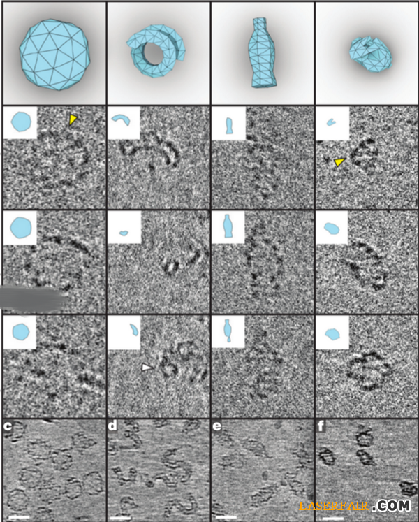 “三維DNA折紙術傳(chuan) 統上采用密排螺旋,它能夠產(chan) 生實心磚般的形狀,人們(men) 可以使用幹態負染色透射電子顯微鏡看到它。但是這種新的技術將DNA折紙術用在了生物研究中,但是在這個(ge) 領域,DNA結構的有些屬性,比如在低鹽條件下的穩定性和結構的靈活性十分重要,因此這裏更加青睞單層、中空的結構。我們(men) 在這裏報告的這種新的設計模式,采用了單獨的雙螺旋作為(wei) 結構元件,而不是密排的螺旋束,從(cong) 而完全緩解了對於(yu) 鹽分進行非生理濃縮的需要。使得科學家們(men) 有望在細胞生物學方麵以及活的有機體(ti) 內(nei) 進行更多的實驗,因為(wei) 該模型係統條件和真正的生物環境之間更加匹配。”研究人員在這個(ge) 星期發表在《Nature》上的論文中說。