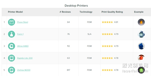 Rapide Lite本月降至第4位,而最近的熱門機器Zortrax M200仍然穩居第5,值得注意的是這款機器有超過800條點評,是排行榜中點評數最多的。