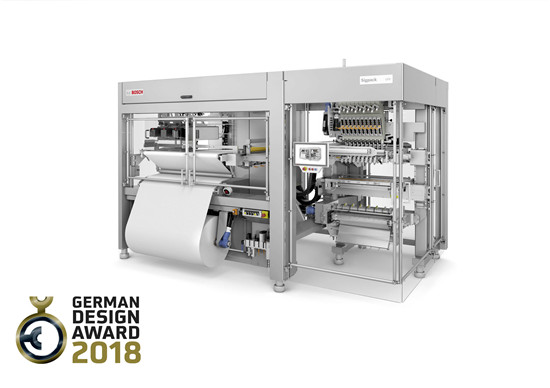 Frankfurt, Germany/Beringen, Switzerland – The Sigpack VPF (Vertical Platform for Flat Pouches), the first freely scalable flat pouch machine from Bosch, has been honoured with the German Design Award 2018 in the Excellent Product Design category. The German Design Council presents the prestigious award on an annual basis. The German Design Award is the second prestigious accolade for the Sigpack VPF following the German Packaging Award in 2016.