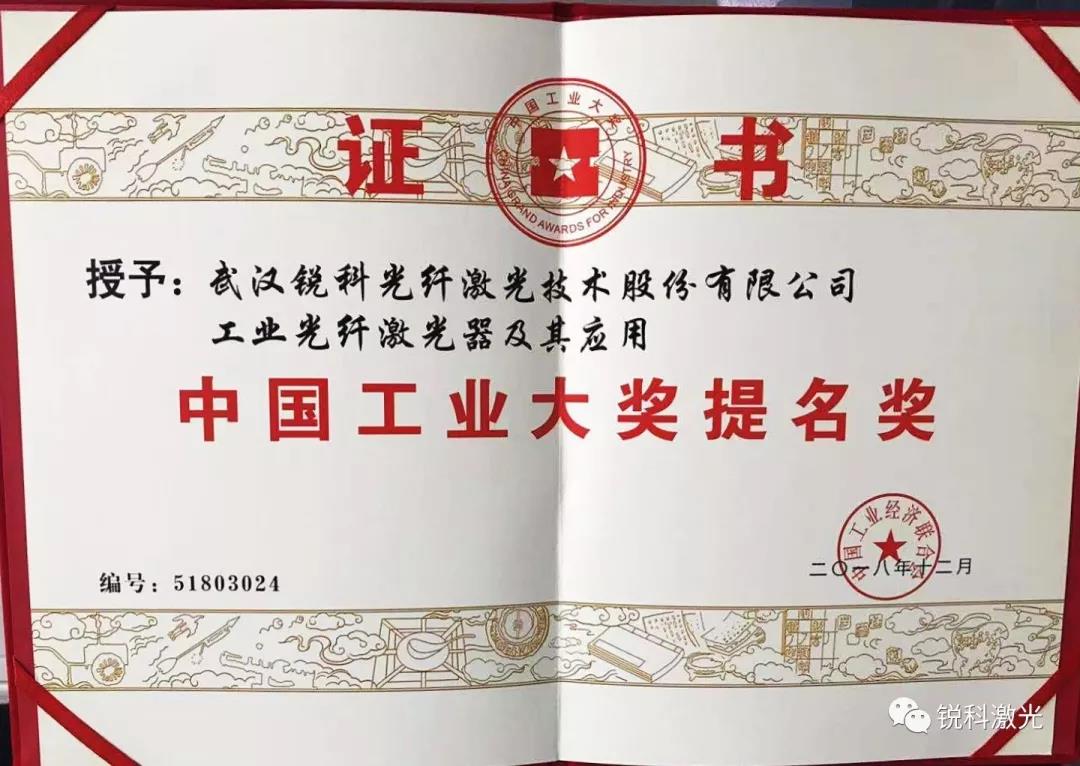 The China Industrial Awards is setup by Chinese central government, and Raycus is the first laser company to have this award.