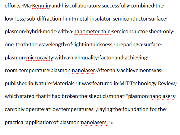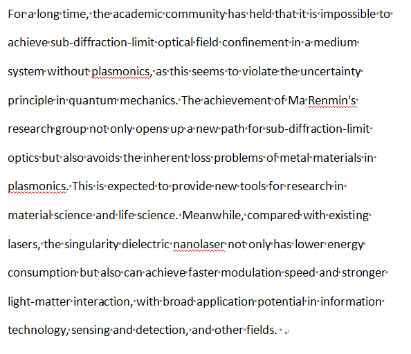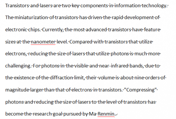 Whether metals can enhance laser performance has long been an unresolved issue in the field of nanooptics... Ma Renmin and his collaborators have solved this problem through meticulous experiments... The experimental results are of great significance and pave the way for further miniaturization of lasers.