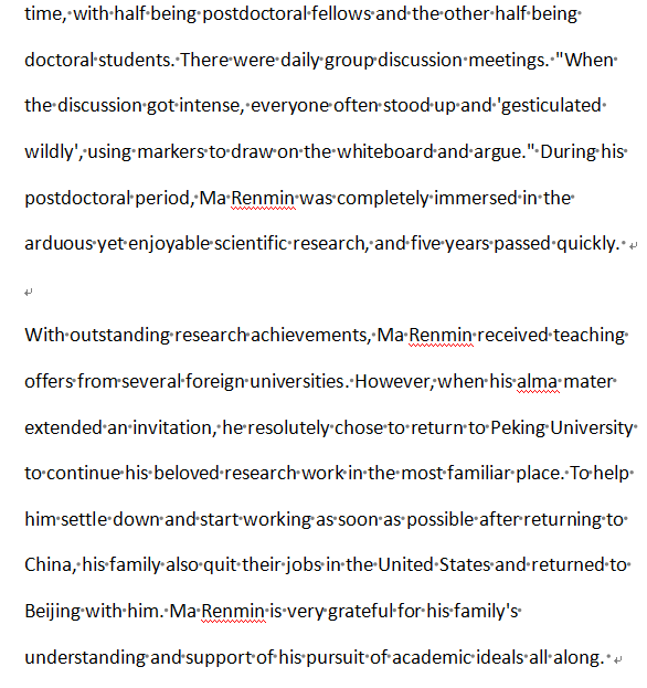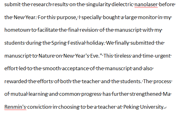 The meticulous guidance of his teachers and the relaxed and free academic atmosphere at Peking University provided Ma Renmin with a vast space to explore the physical world. During his postgraduate studies, he successively won numerous honors such as the "Top Ten Academic Stars" of Peking University, the Ye Qisun Experimental Physics Award, the Outstanding Graduate of Peking University, and the National Excellent Doctoral Dissertation. He said, "These awards are affirmations of the research achievements I have made under the meticulous guidance of my teachers. More importantly, the teachings and examples of my teachers have enabled me to deeply understand the true spirit of scientific research during my research process."