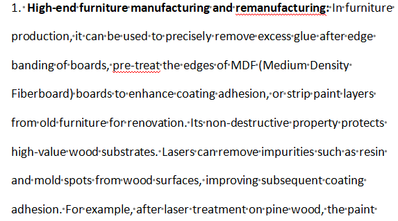 Leveraging its technical advantages, laser cleaning has demonstrated huge application potential in multiple sub-segments of the wood products industry. Application scenarioses are as follows: