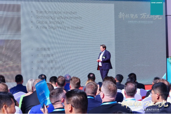 A new journey begins, and light shines across thousands of miles. The celebration kicked off with warm applause. Dr. You Song first on behalf of all employees of DNE Laser, extended the warmest welcome and sincere gratitude to the leaders, guests, industry experts, customer representatives and partners present at the event. He stated that he would like to thank the Chinese and Swiss governments for their policy support and careful guidance to DNE Laser, and express his gratitude to customers for their long-term trust and companionship. Over the past 17 years of forging ahead, today we have jointly witnessed another new milestone of DNE Laser — the grand opening of the Foshan Smart Manufacturing base.