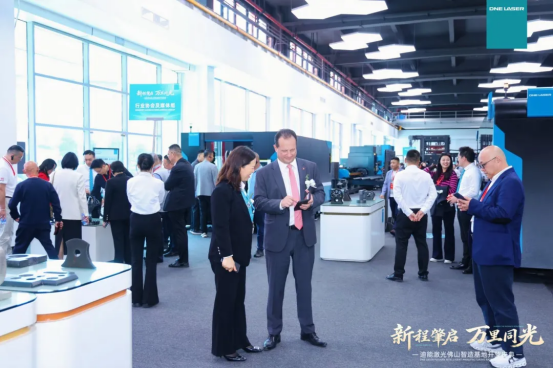 Mr. Markus Thür, Consul General of Switzerland in Guangzhou; Chen Haobin, Party Secretary and Director of the Standing Committee of the People's Congress of Nanhai District, Foshan City; Domenico, Group President of Bystronic; Dr. You Song, President of Bystronic China and Asia-Pacific Region as well as Global CEO of DNE Laser; along with industry partners and representatives of domestic and foreign customers, gathered together to jointly witness this important milestone in the laser equipment industry. The event was filled with a warm atmosphere of government and enterprises working hand in hand to embark on a new journey.