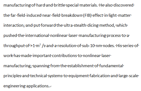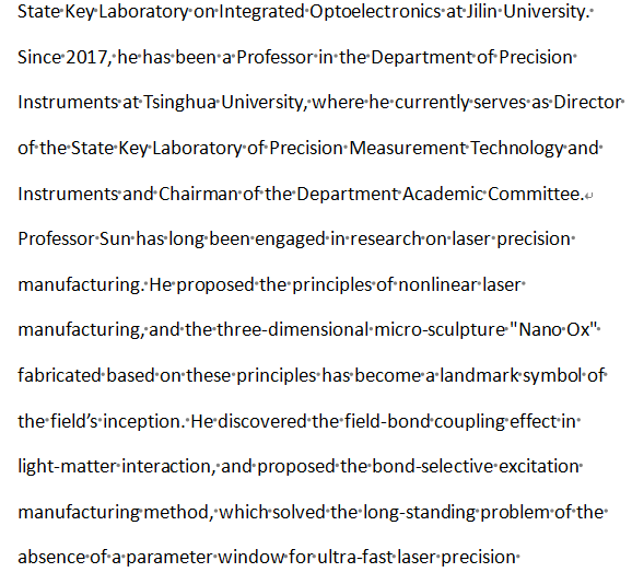 Professor Sun Hongbo has long been engaged in research on laser precision manufacturing. His series of research efforts have made significant contributions to the development of nonlinear laser manufacturing—from the establishment of fundamental principles and technical systems, to equipment fabrication and large-scale engineering applications. His work has provided crucial technical support for the high-quality development of China’s laser industry. His election as a CAS academician is not only a high affirmation of his scientific contributions, but also indirectly testifies to the rigorous standards and forward-looking vision applied by the SLA in selecting its review experts, further enhancing the award’s credibility in the industry with this significant endorsement.