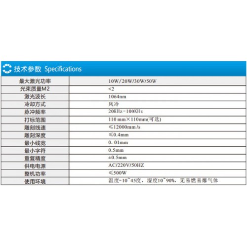 F係列光纖激光噴碼機是目前世界上較先進激光打標、噴碼設備。可廣泛應用於各種流水線飛行打標和高速靜態打標行業,能滿足多種高精度、高效率的激光打標需要,采用世界領先水平的光纖激光器和進口零配件,打標精度高,速度快,性能穩定,壽命長達10萬小時。