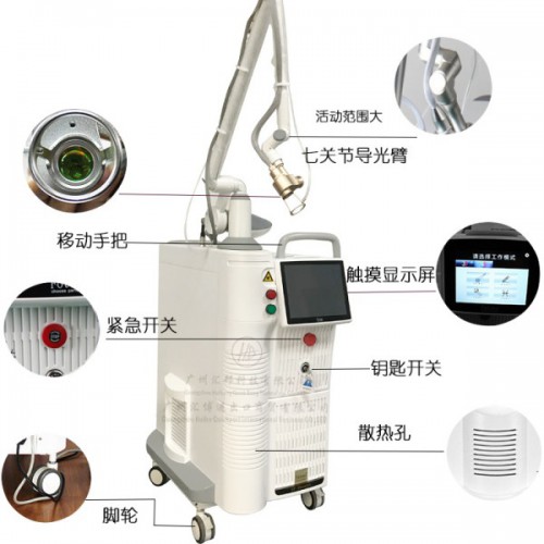 采用無創模式CO2激光來治療,深度可控製在200-500um,,溫度可控製在50-70度,在精確溫控及深控條件下,調節參數變化,實現膠原蛋白收縮、重組及再生目的,