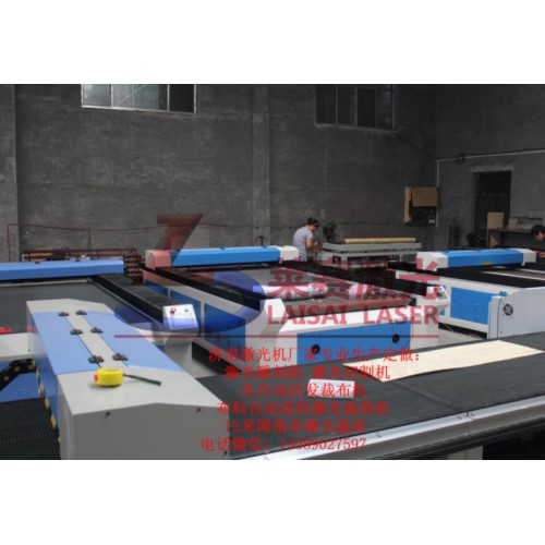 萊賽全自動沙發裁剪設備——激光布料裁剪機,沙發激光裁布機智能化,電腦控製,操作方便,一個(ge) 人可以同時操作好幾台機器,不需要人工鋪布,機器自動送料 自動鋪布 自動裁剪 自動化 工作效率高,和人工相比萊賽電腦激光裁剪機,除了工作速度快,效率高優(you) 勢,還具有,便於(yu) 管理,裁剪布料精確度更高,更節省布料,而且用激光機裁剪後的布料麵料,具有自動收邊效果,不需要人工鎖邊,不會(hui) 出現脫邊現象,節省了一道工序,相對應的也提高了生產(chan) 效率,布料裁剪機還具有以下功能,氣缸壓料,防止布料裁剪過程中出現偏移現象,智能數字化儀(yi) ,可以直接將我們(men) 需要的版型進行掃描記憶切割裁剪,操作更便捷。使用布料自動裁剪機?服裝 沙發 毛絨玩具 汽車座套 戶外用品生產(chan) 是極具前景的行業(ye) ,在裁剪的工作環節裏,使用自動布料裁剪設備,布料自動裁剪機,更能保證產(chan) 品品質、減低成本、提高效率的優(you) 勢。