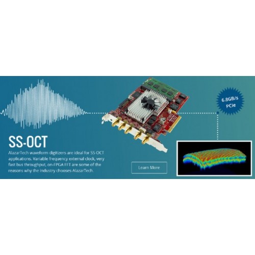 ATS9371擁有支持FFT運算的板載FPGA模塊,數據傳(chuan) 輸率可達 6.8 GB/s。ATS9371是新一代OCT、雷達、超聲波、光譜和射頻信號記錄等應用的理想解決(jue) 方案。