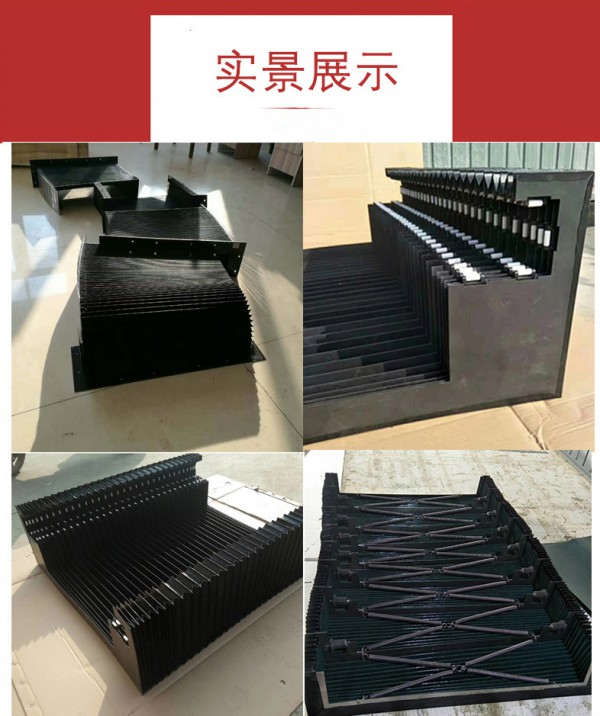 風琴式防護罩不一樣款式之間不同很小,主要有兩種方式,一種是“一字型”,一種是“U”形,歪斜或許屋形的外形有利於液體的排放。方形的用於台形領域(如升降台,醫療器械)。防護罩可以在設備拚裝的終究時間依照,用戲法貼聯接。