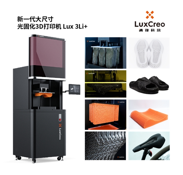 Lux 3Li+是新一代【大尺寸】DLP光固化3D打印機,打印麵幅達400 × 259 x 380 mm,可以滿足大尺寸產(chan) 品的規模化生產(chan) 需求,應用覆蓋時尚消費、康複醫療、工業(ye) 、汽車領域的同時,拓展至航空航天、運動器械等領域。