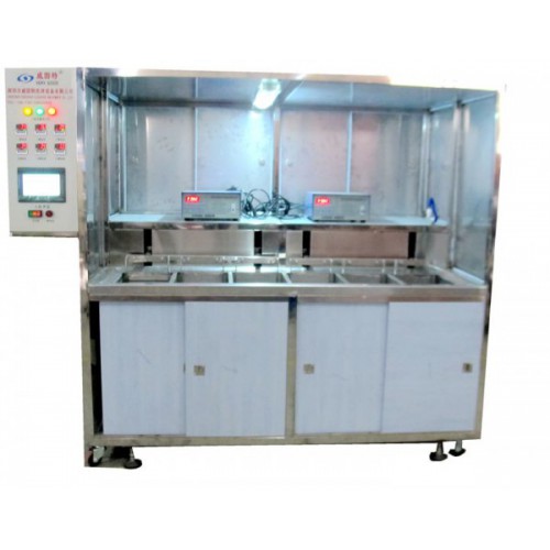 3. 清洗槽:工件在超聲波清洗槽進行超聲波清洗,可將工件表麵及縫隙中的油汙、粉塵、指紋、汗漬等離子型汙垢震落;