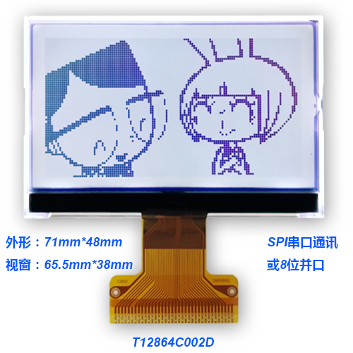 | T128128M6570A | 70*65.5 | 42.5*44.5 | 產品描述 | JPG | UC1617 | 3.3V/串口 | ||||