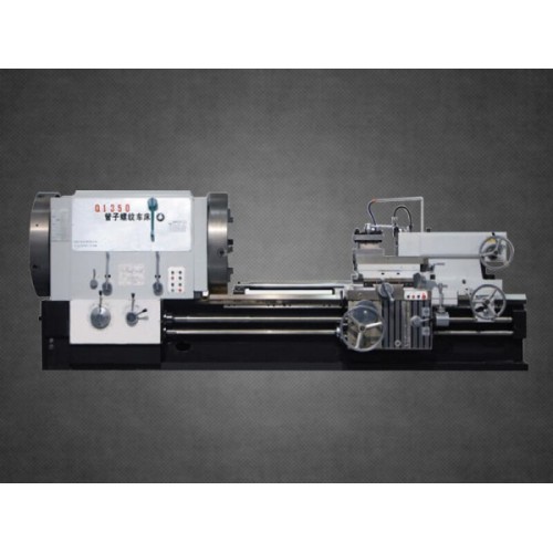 管子螺紋車床一般在主軸箱上設一較大通孔﹐工件穿過通孔後被位於主軸兩端的兩個卡盤夾緊作迴轉運動。