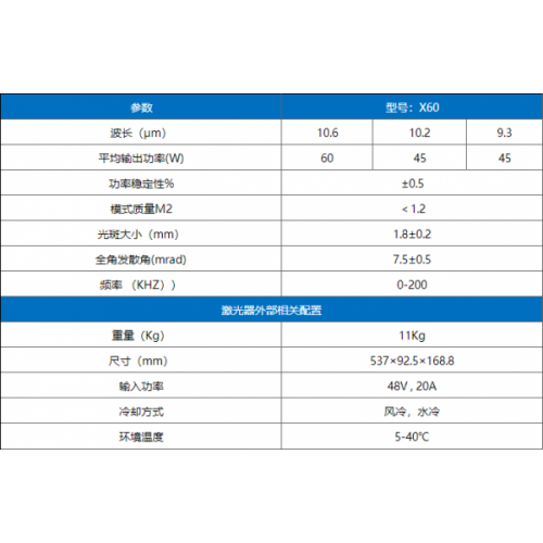 希歐60瓦(型號:X60)CO2激光器的參數: