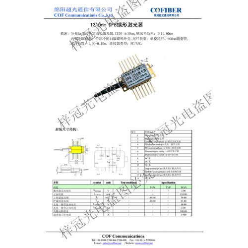 蝶形激光器:980nm,1480nm泵浦激光器,1310nm發射機專(zhuan) 用,CWDM 和 DWDM激光器,有害氣體(ti) 檢測激光器。