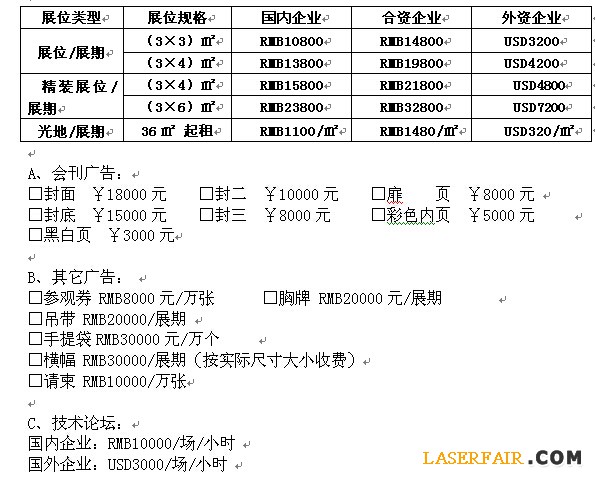 參展方式、廣告及費用(雙開口展位費用加收10%)