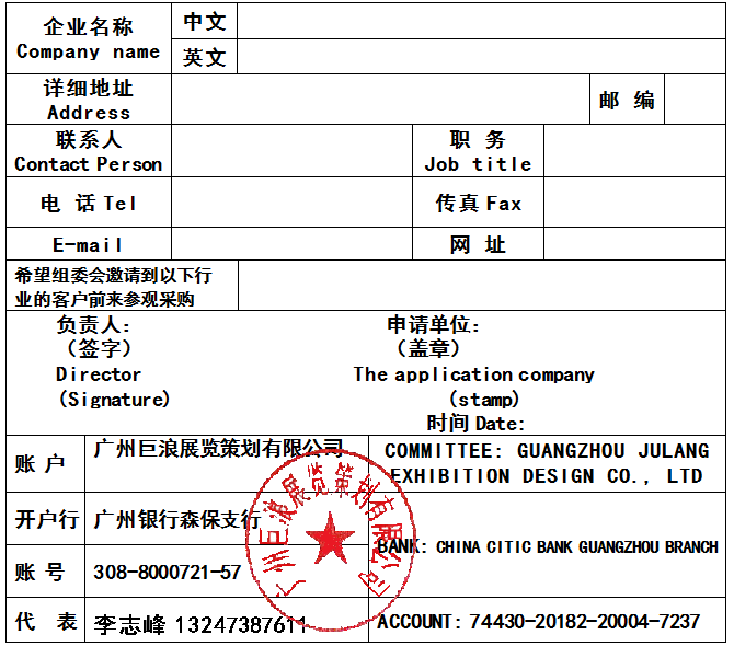 賬戶:廣州巨浪展覽策劃有限公司