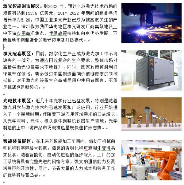 中國(深圳)激光與(yu) 智能裝備、光電技術博覽會(hui) 是華南國際工業(ye) 博覽會(hui) 旗下核心專(zhuan) 業(ye) 展之一。 |