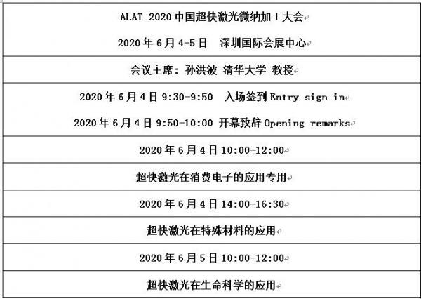 ALAT 2020中國超快激光微納加工大會