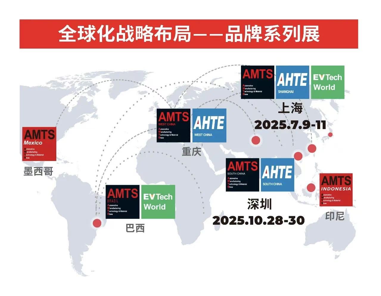 中國汽車出海已經成為(wei) 行業(ye) 發展的必然趨勢,不僅(jin) 為(wei) 國內(nei) 汽車產(chan) 業(ye) 開辟新的增長點,更是中國從(cong) 汽車大國向汽車強國轉變的關(guan) 鍵一步。AMTS 2025將布局全球,大舉(ju) 開拓印尼、墨西哥、巴西、泰國等海外市場,與(yu) 一眾(zhong) 行業(ye) 領軍(jun) 品牌竭力推動全球汽車製造產(chan) 業(ye) 的發展與(yu) 變革,迎接中國新能源汽車產(chan) 業(ye) 集群出海機遇與(yu) 挑戰。此外,全新推出的海外買(mai) 家計劃,將整合全球汽車產(chan) 業(ye) 鏈資源,覆蓋海外汽車產(chan) 業(ye) 聚集地,組織海外觀眾(zhong) 來華參觀,建立新商機,助力中國汽車產(chan) 業(ye) 拓展海外熱點市場!