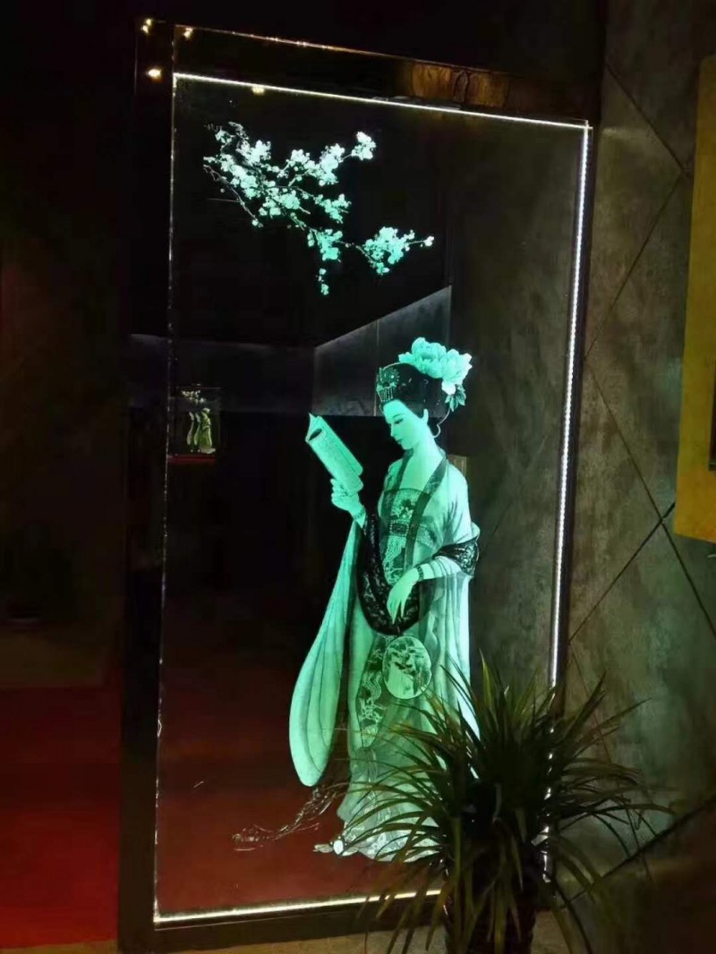 袁總介紹到:“第一,在亞克力內雕方麵的技術和經驗,就是同行所不具備的。國內外多個大公司主動找我們生產打樣和合作。如:創維、華為、飛利浦、華碩、長城汽車、沃爾沃、捷豹、海康威視、星巴克、任天堂等,小公司則更多。同行上市公司都找我們提供樣品;第二,超大幅麵內雕機的生產和成本優勢。目前我們光威內雕機雕刻幅麵不受限製,玻璃內雕後可以鋼化!據我了解,國內其他同行做的最大幅麵是3×4米,成本很高,機架要20多萬。而我們若做4×8米的內雕機架子,還用不了20萬。我們大幅麵的技術理論上不受幅麵的限製。”