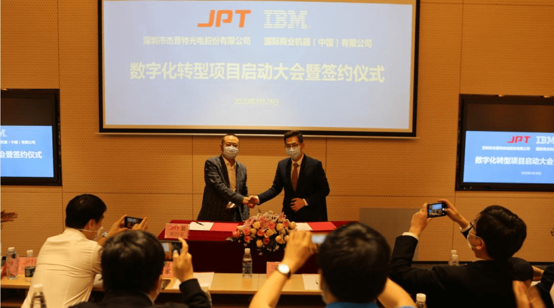 從(cong) 創業(ye) 公司成長為(wei) 科創板上市公司,在未來發展道路上,傑普特會(hui) 有大量的核心技術湧現以及高端研發主力人才的加盟,各條產(chan) 品線在各個(ge) 細分的賽道裏會(hui) 獲得一席之地,從(cong) 而公司管理難度幅度相對提高。因此,公司上市半年後,傑普特召開數字化轉型項目啟動大會(hui) 暨與(yu) IBM簽約儀(yi) 式,全麵啟動數字化轉型項目。