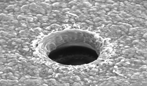 隨後又發展了超聲-電火花加工,先用超聲穿透陶瓷塗層,再用電火花加工金屬部分。或者先用強激光打穿陶瓷塗層,再用弱激光加工金屬部分。這基本上都是複合加工,沿用的都是先塗層再打孔的思路,但是這樣工藝複雜,很不理想。對單晶葉片來說還有個(ge) 難題要克服,那就是熱損傷(shang) ,因此技術難度更大。