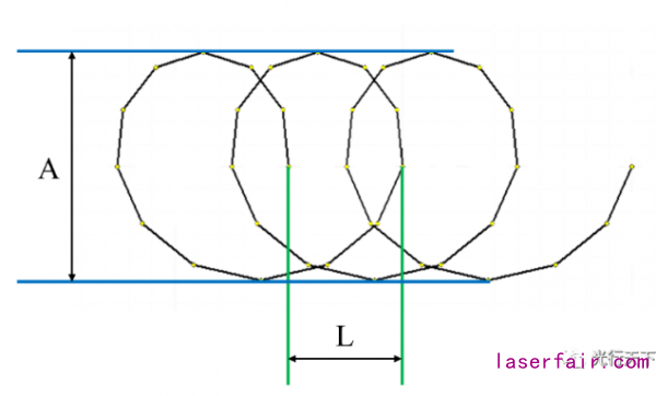 圖2.焊接路徑擺動示意圖(其中A表示擺動幅度,L表示周期長度)