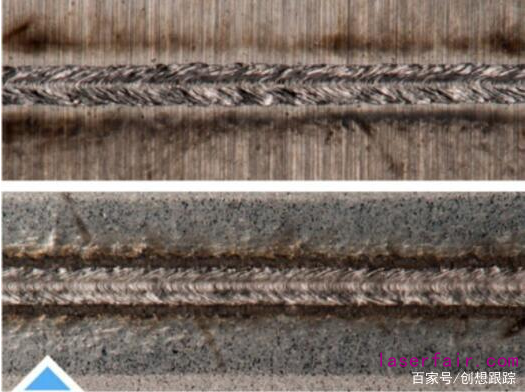使用不同的金屬和合金製造產(chan) 品的能力大大提高了設計和生產(chan) 的靈活性。在控製成本的同時,優(you) 化成品的性能,例如腐蝕、磨損和耐熱性,是進行異種金屬焊接的普遍動機。連接不鏽鋼和鍍鋅鋼就是一個(ge) 例子。由於(yu) 其出色的耐腐蝕性,304不鏽鋼和鍍鋅碳鋼已廣泛應用於(yu) 各種應用,例如廚房用具和航空部件。該工藝提出了一些特殊的挑戰,特別是因為(wei) 鋅塗層會(hui) 帶來嚴(yan) 重的焊縫孔隙問題。在焊接過程中,熔化鋼和不鏽鋼的能量會(hui) 在大約900攝氏度下蒸發鋅,這大大低於(yu) 不鏽鋼的熔點。鋅的低沸點導致在鎖孔焊接過程中形成蒸汽。在試圖逸出熔融金屬時,鋅蒸氣可能會(hui) 滯留在凝固的焊縫中,從(cong) 而導致焊縫孔隙率過大。在某些情況下,鋅蒸氣會(hui) 隨著金屬的凝固而逸出,從(cong) 而在焊接表麵形成氣孔或粗糙度。通過適當的接頭設計和激光工藝參數的選擇,可以輕鬆進行整飾和機械焊接。厚度為(wei) 0.6毫米的304不鏽鋼和厚度為(wei) 0.5毫米的鍍鋅鋼的搭接焊縫的上表麵和下表麵均無裂紋或氣孔。