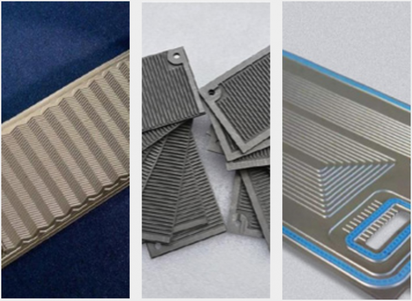 雙極板(簡稱BPP)主要作用為(wei) 支撐MEA、提供氫氣、氧氣和冷卻液流體(ti) 通道並分隔氫氣和氧氣、收集電子、傳(chuan) 導熱量。常見的雙極板材料有石墨、複合材料和金屬。金屬材料具有機械強度高、體(ti) 相電導和熱導優(you) 良,容易製成薄板並衝(chong) 壓加工成型的特點,其應用最為(wei) 廣泛。 金屬雙極板由兩(liang) 塊衝(chong) 壓成形的金屬單極板密封焊接而成,最常采用的材料為(wei) 鈦合金和不鏽鋼316L,經過衝(chong) 壓後,材料硬力聚集在內(nei) 部,焊接時得到釋放,易造成極板變形、流道焊穿、密封性差等問題。與(yu) 此同時,金屬雙極板激光焊接會(hui) 造成局部金屬氧化物的生成,對於(yu) 該區域的表麵塗層性能造成影響,最終影響燃料電池的性能及壽命。 為(wei) 解決(jue) 上述係列難題,聯贏激光在前期技術和工藝積累的基礎上,通過在流道區域焊接(雙極板流場有點狀流場、平行直流道流場、交指形流道流場以及單通道蛇形流道流場等),杜絕變形等問題,保證兩(liang) 單極板之間的密封性,並將最低至0.05mm的超薄板變形降到最小,使整個(ge) 氫燃料電池堆焊接變形得到有效的控製的同時,提高金屬雙極板的導電性能。