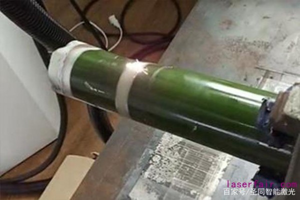 激光清洗的時候不僅(jin) 可以手持激光槍頭清洗,也可以搭載旋轉工裝或者機械手臂實現自動化清洗,將激光槍頭固定在機械手臂上,使得激光槍頭所發出的激光固定在一個(ge) 位置上,將所需要清洗的工件固定在旋轉工裝上麵,工件勻速旋轉,激光束固定出光,使得所清洗的效果一致,不會(hui) 出現清洗偏差。