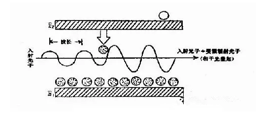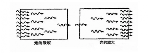 由於(yu) 入射光子的感應或激勵,導致激發原子從(cong) 高能級躍遷到低能級去,這個(ge) 過程稱為(wei) 受激躍遷或感應躍遷。這種躍遷輻射叫做“受激輻射”。受激輻射出來的光子與(yu) 入射光子有著同樣的特征,如頻率、相位、振輻以及傳(chuan) 播方向等完全一樣。這種相同性就決(jue) 定了受激輻射光的相幹性。入射一個(ge) 光子引起一個(ge) 激發原子受激躍遷,在躍遷過程中,輻射出兩(liang) 個(ge) 同樣的光子,這兩(liang) 個(ge) 同樣的光子又去激勵其它激發原子發生受激躍遷,因而又獲得4個(ge) 同樣的光子。如此反應下去,在很短的時間內(nei) ,輻射出來大量同模樣、同性能的光子,這個(ge) 過程稱為(wei) “雪崩”。雪崩就是受激輻射光的放大過程。受激輻射光是相幹光,相幹光有疊加效應,因此合成光的振幅加大,表現為(wei) 光的高亮度性(圖4-26-6)。