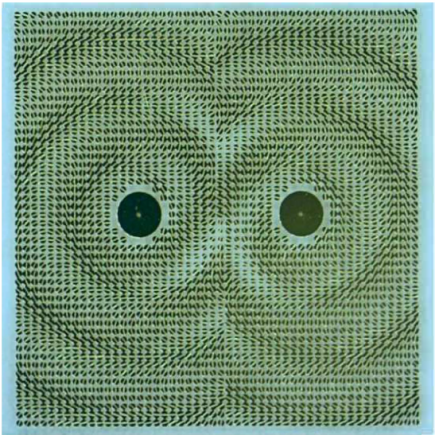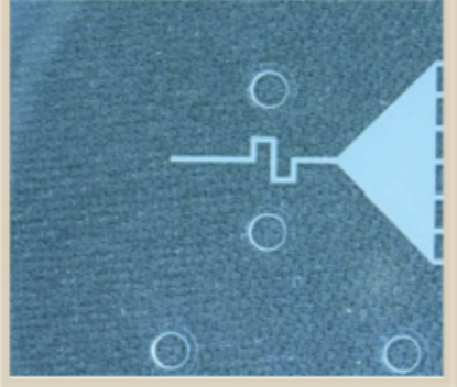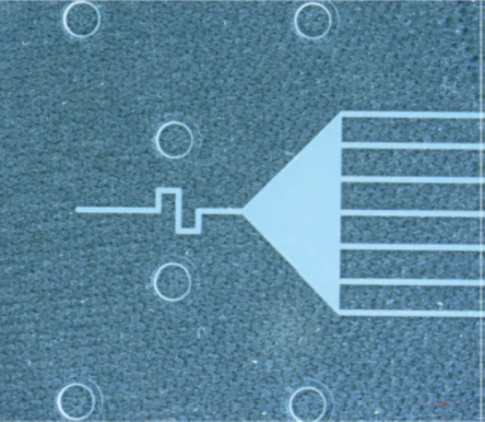 圖3:激光加工預鑽孔玻璃上的導電圖形。得益於(yu) 靶標識別係統,激光可以在孔間形成不間斷的導電路徑。