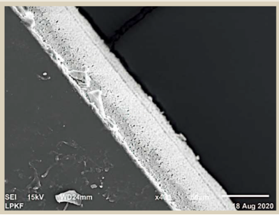 圖4:50nm厚度的鈦粘合劑將300至400 nm的銅層覆在肖特AF32玻璃基板上,通過PLR4加工金屬層形成電容結構。