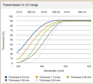 圖9:不同厚度的肖特BF33高硼矽玻璃在紫外激光下的透射率