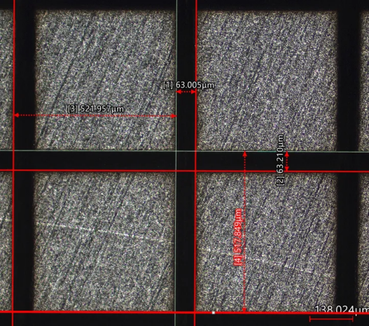 在實際應用中,激光束以準直方式通過聚焦切割頭,精確作用於(yu) 碳化矽材料的背金層,確保去除厚度精確控製在10微米以內(nei) ,且去除寬度符合工藝要求,通常不小於(yu) 正麵溝道的一半。具體(ti) 加工步驟中,碳化矽晶圓片被倒置放置於(yu) 透明吸附治具上,通過CCD攝像頭輔助定位,準確抓取晶圓片上的溝道進行對位。激光束隨後聚焦至背金層進行高精度去除。以皮秒紫外激光器為(wei) 例,該設備能夠實現溝道寬度為(wei) 100微米的正麵精度,同時在背金麵上去除寬度達到50微米以上,去除深度可控製在3微米左右。這種高精度加工不僅(jin) 提升了去除效果,還減少了對基底材料的影響,從(cong) 而確保了芯片性能和質量的穩定性。