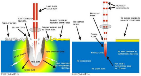 圖5 納秒和超快激光與(yu) 材料作用機理對比