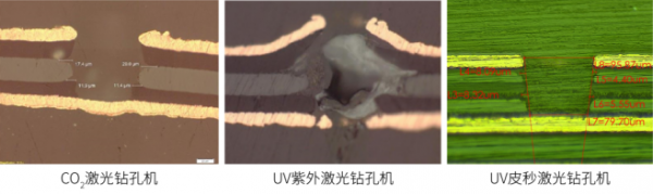 CO2激光鑽孔速度遠大於(yu) UV激光鑽孔。但鑽孔前後都需要做處理。
