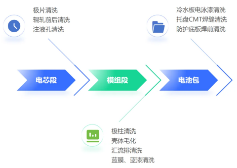 在動力電池的生產(chan) 過程中,電池包托盤CMT焊縫、電池水冷板電泳漆、電池包箱體(ti) 氧化層、防護底板焊前氧化層的清洗都影響了電池包的安全性能。針對以上清洗製程,光至科技能提供200W~1000W脈衝(chong) 光纖激光器。客戶可根據具體(ti) 的效率要求,靈活選擇相應的激光清洗方案。