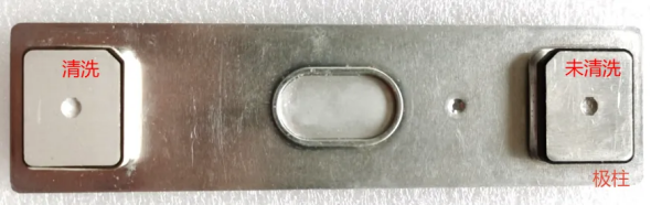 通過激光技術對表麵氧化層進行去除,可以使得極柱接觸電阻顯著降低,焊接良率顯著提升。與(yu) 傳(chuan) 統人工打磨方式相比,激光清洗能將極柱表麵耐腐蝕性能提升一倍以上,在清洗效率和成本方麵也具有優(you) 勢。光至科技YFPN-200-GM型號的激光器經測試,清洗效率可以達到<2秒/個(ge) 。