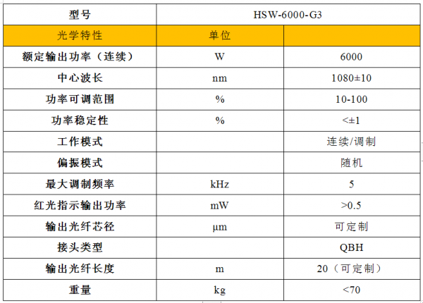 針對開關(guan) 櫃焊接,大族光子提供6000W單模塊激光器,該激光器具有光電轉換效率高、調製頻率範圍寬、抗高反能力強、穩定可靠性高、加工效果好和免維護運行等突出優(you) 勢,廣泛應用於(yu) 切割、焊接等工業(ye) 加工領域,激光器如圖2.1所示,激光器參數見表2.1。