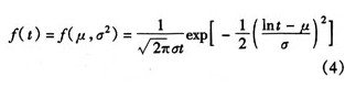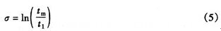 式中,μ是中值壽命tm的對數值,σ為(wei) 對數標準差,基於(yu) 此,可準確描述對數正態分布。
