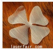 激光燒花就是利用激光的高能量密度特性,投射到服裝材料表麵,將材料汽化,並在服裝材料表麵產(chan) 生清晰外形的加工工藝。如下圖所示服裝材料為(wei) 布料,材料外形采用激光燒花而成,激光燒花加工無需開刀模,切邊自動熔合,無散口現象。