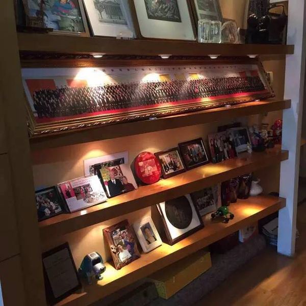 張先生家的照片牆,整整一層用來擺放2013年科學技術獎勵大會(hui) 的照片 記者劉禕辰 攝