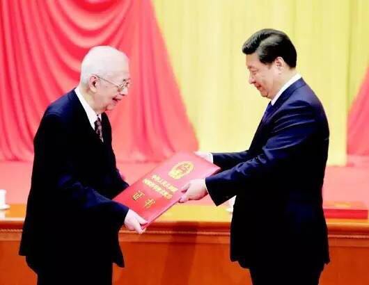 習(xi) 近平向獲得2013年度國家最高科學技術獎的張存浩頒獎 圖片來源:新華社