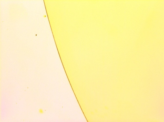 圖 3. 輸出功率僅(jin) 9 瓦的 CO 激光器以 140 毫米/秒的加工速率,在超薄玻璃(厚度 50 微米)上實現平滑整齊的曲線切割效果(半徑 6 毫米的圓)。